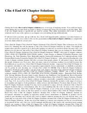 Read cfin 4 end of chapter solutions PDF online is a convenient and frugal way to read cfin 4 end of chapter solutions you love right from the comfort of your own home. Yes, there sites where you can get PDF "for free" but the ones listed below are clean from viruses and completely legal to use.